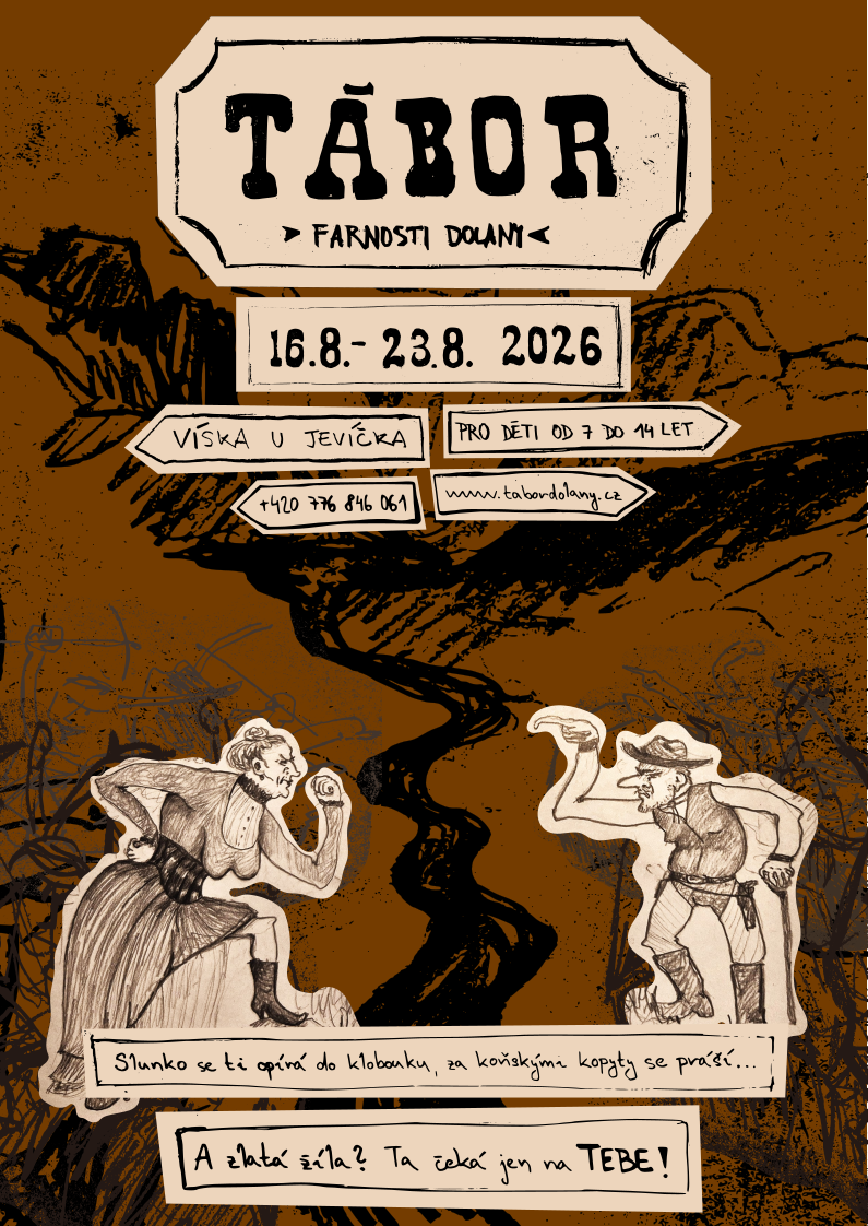 - Pořádáme tábor, který spojuje křesťanské hodnoty, akční larpové hry a klasickou táborovou atmosféru. Navazujeme na více než dvacetiletou tradici farních táborů v Dolanské farnosti.